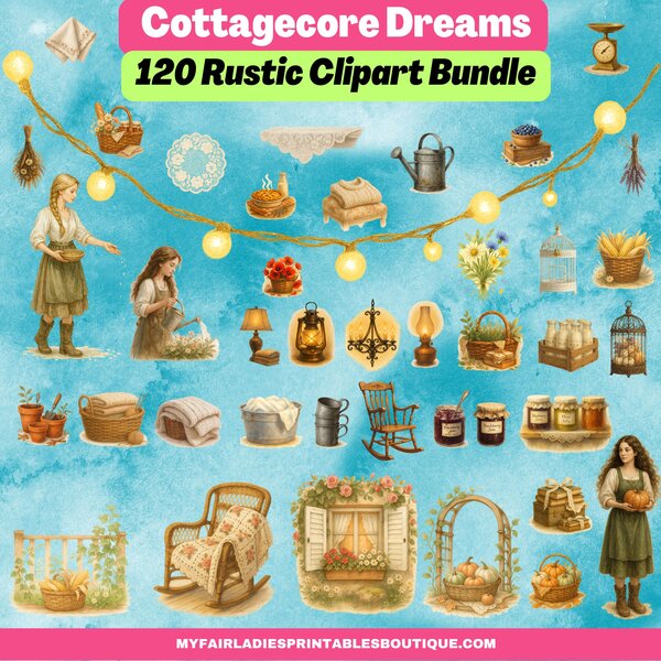 Cottagecore Dreams - 120 Clipart Bundle - Perfect for Commercial Projects