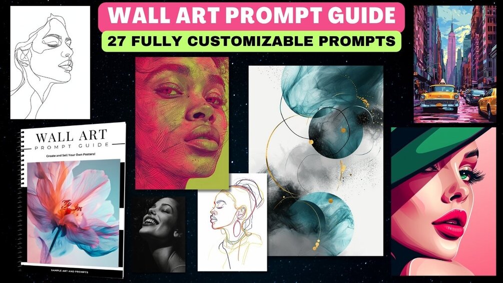 Unveil the potential of AI in your digital product lineup with the Wall Art Midjourney Prompt Guide, specially curated for small entrepreneurs eager to diversify their offerings in the digital and printable art market.